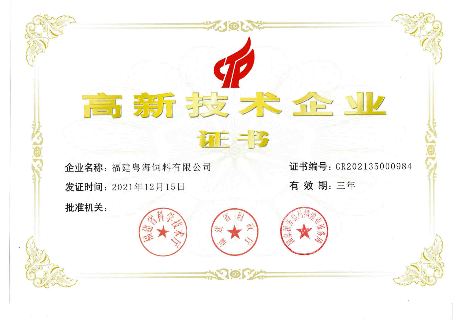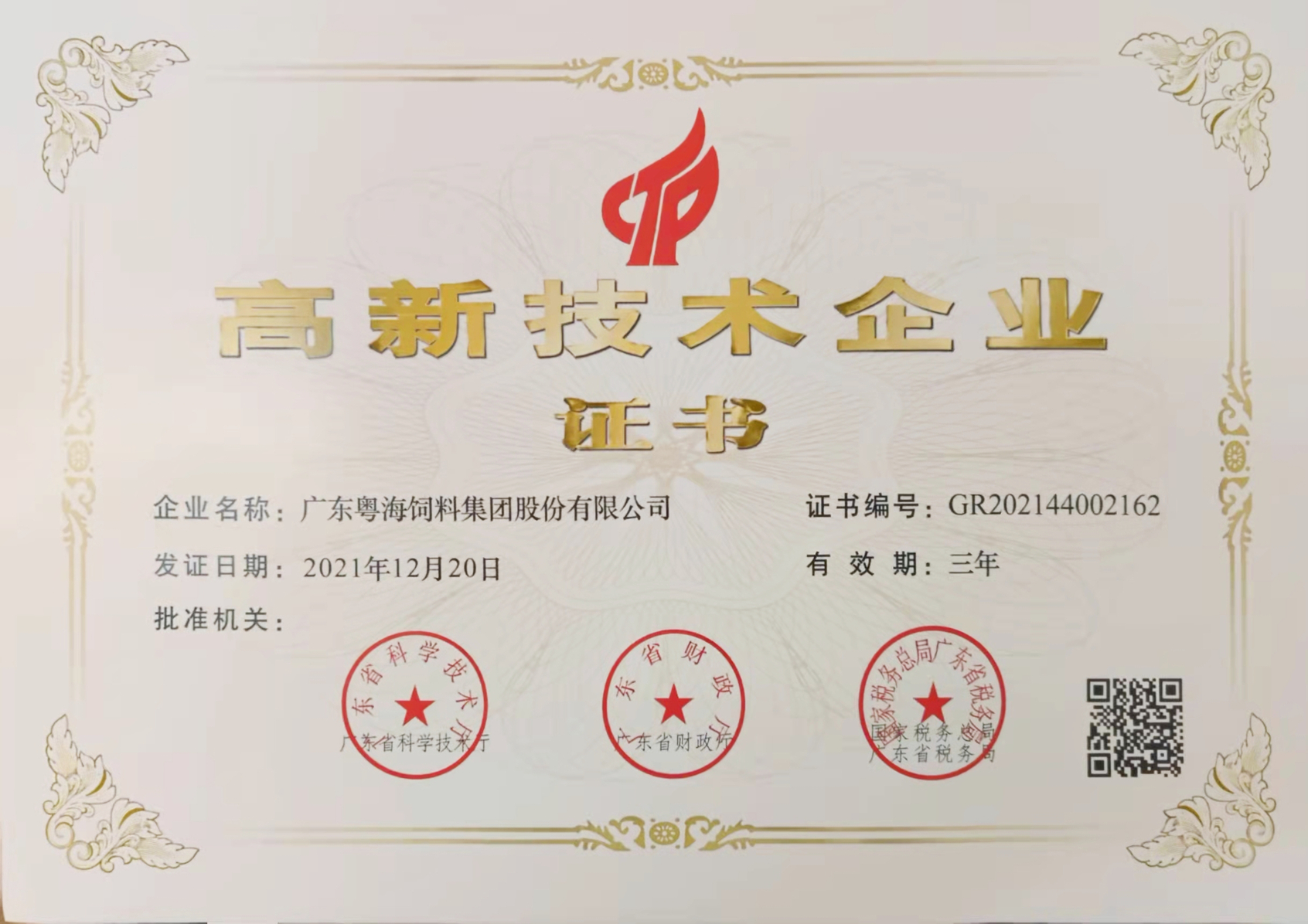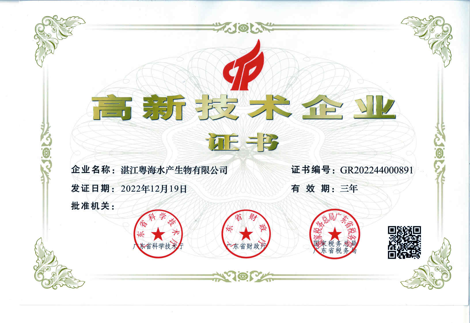 高新技術(shù)企業(yè)證書(shū)-粵海生物